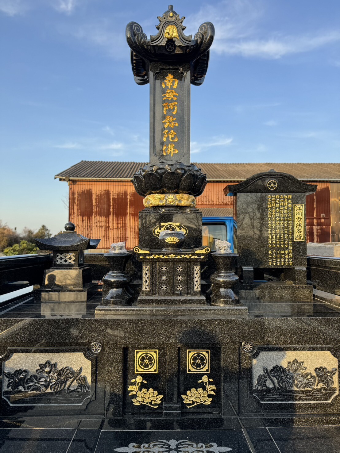 ■ 仕様:大名笠付き・丸蓮華付き・龍彫刻・扉横連3D彫刻